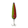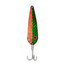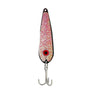 The Pro King Spoon has been whacking big Great Lakes salmon and trout for years. Built on Pro King's deep-cup trolling spoon blank and sporting a brilliant silver-plated underside, the Pro King spoon pumps out loads of flash to complement the unique color patterns on the topside; holographic tape adds extra depth and reflectivity. Deadly on all salmonids, and many other open-water species as well. Quality hardware includes a sturdy VMC® treble hook that's proven to withstand smashing strikes.